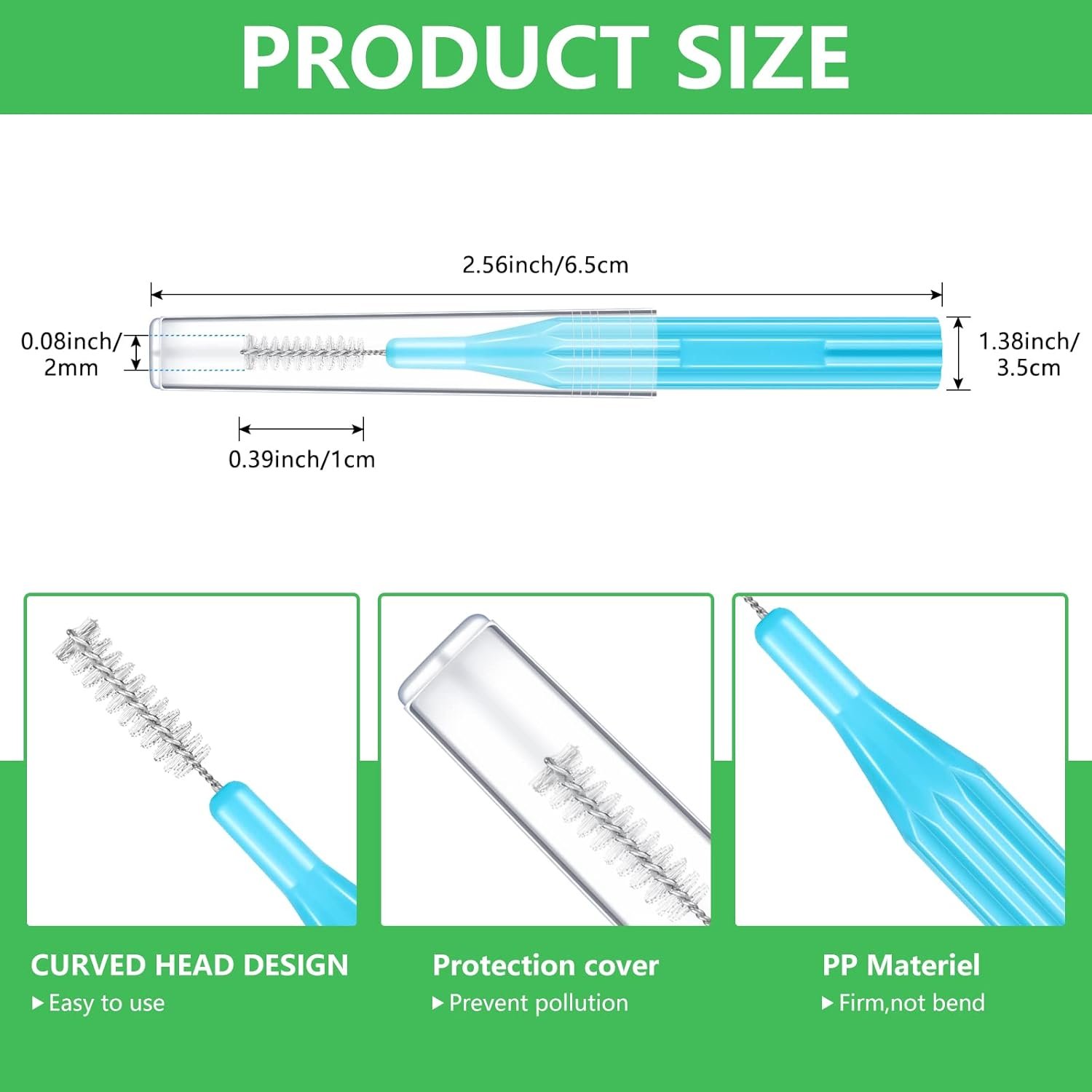 Keep Oral Clean: the interdental brush toothpick can not only help you remove debris, clean space between teeth, but also prevent bad breath, bring good care to your teeth; Besides, you can also use them to clean the false teeth, tooth brace, keep your gum safe and make your teeth healthy