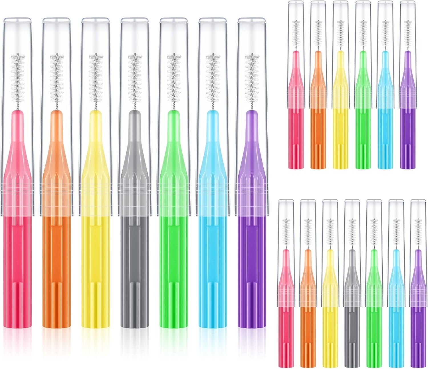 Package Information: comes with 20 pieces of interdental brushes in 7 bright colors, namely, pink, orange, yellow, purple, blue and green, 3 pieces per color, and 2 pieces in gray, sufficient quantities can meet your daily use and replacements, can also meet sharing needs