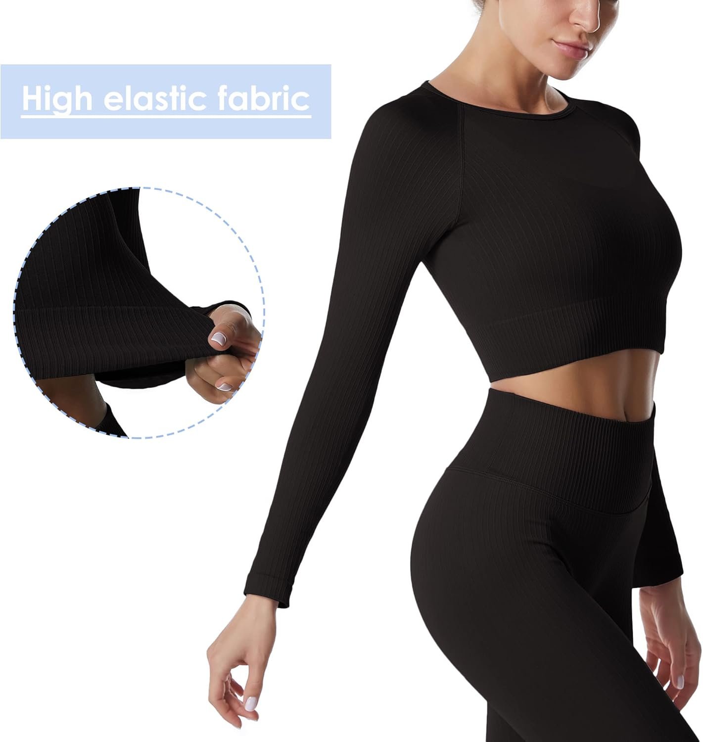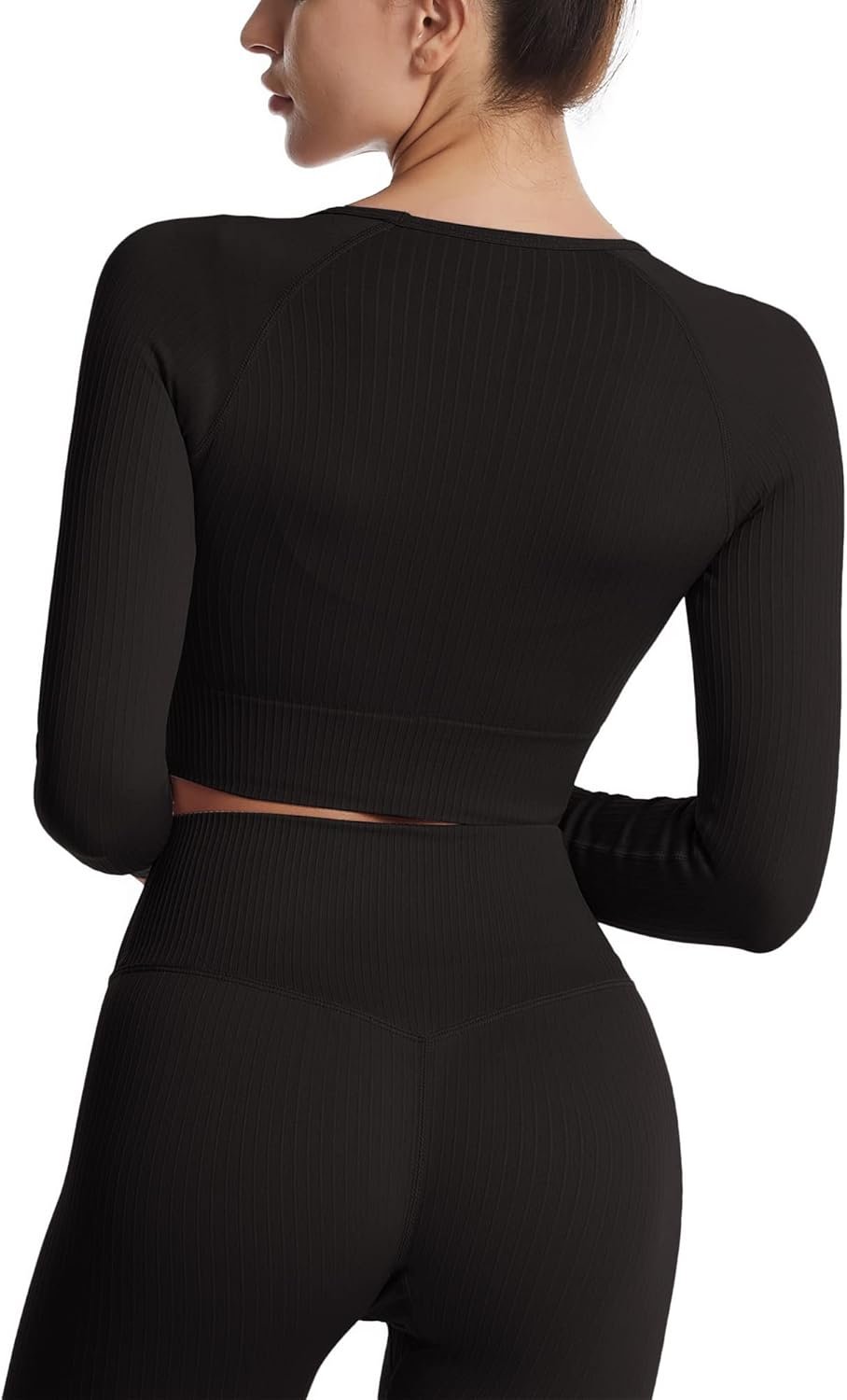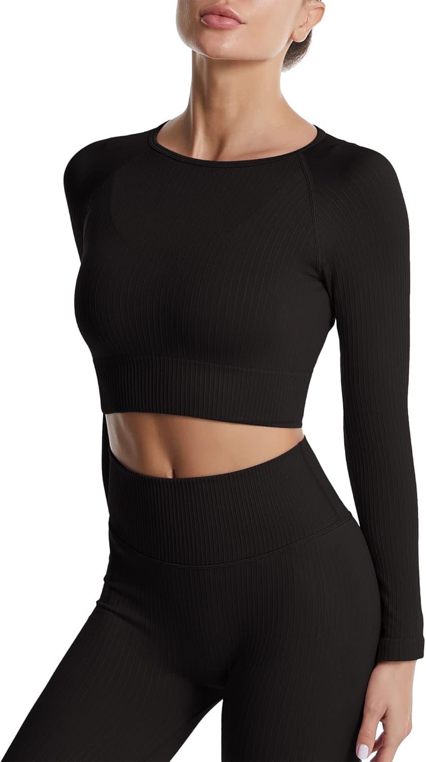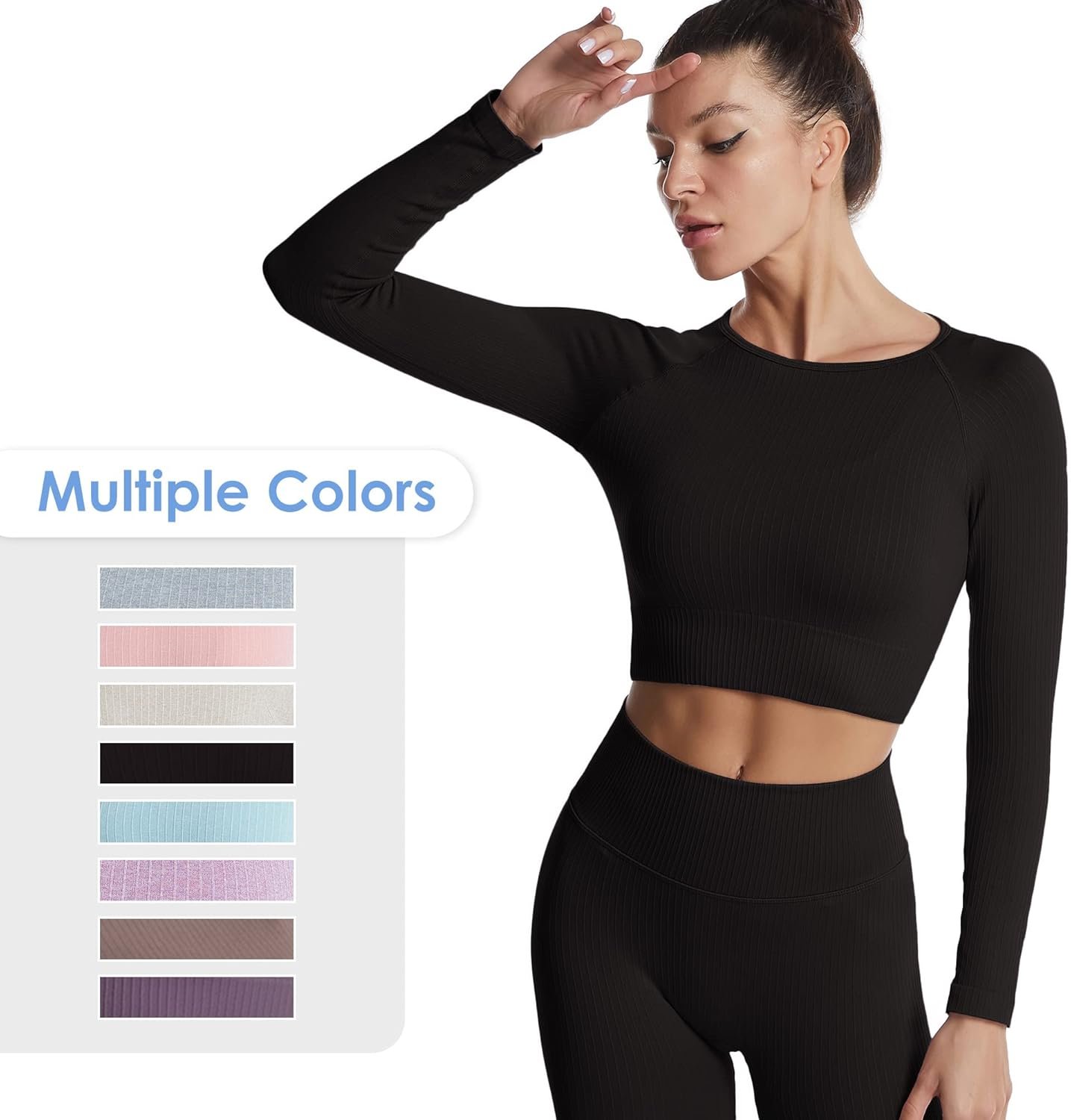 SEAUR Women’s Sports Top Long Sleeve Crop Top Yoga Fitness Running Shirt Long Sleeve T-Shirt Tight Short Gym Top Sports Shirt S M L